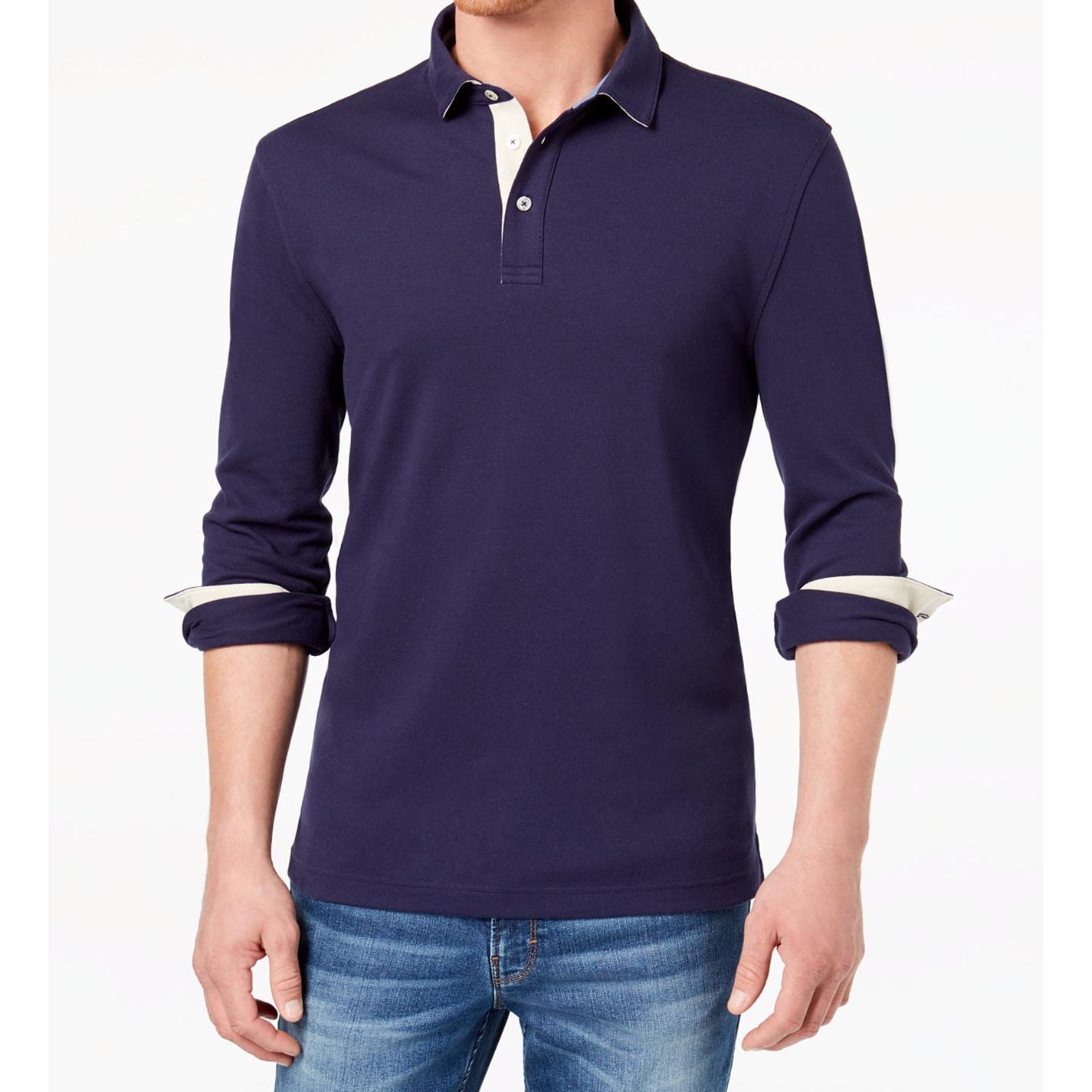 A contrast placket and cuffs detail a classic long-sleeved polo from early bird, sporting a touch of stretch for complete